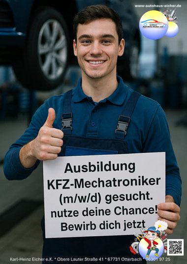 als Kfz-Mechatroniker (m/w/d). Ausbildungsdauer: 3,5 Jahre.